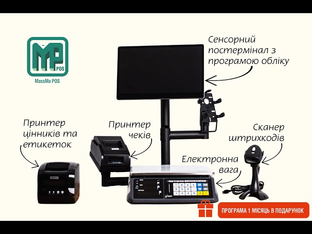 Комплект POS-обладнання для зоомагазину з ергономічною стійкою — професійне рішення для швидкого і зручного обліку всіх товарних позицій, у тому числі вагових. В комплекті: сенсорний POS-термінал для комфортного обслуговування, електронні ваги для точного зважування кормів та інших товарів, чековий принтер для друку розрахункових документів, принтер етикеток для оперативного маркування та хмарна програма обліку для повного контролю продажів і фасування.